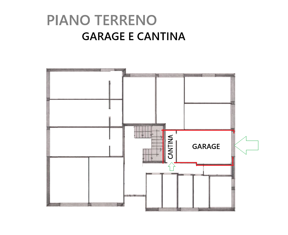 A piano terreno posti auto condominiali liberi, spazioso garage con cantina; a piano sottotetto soffitta.