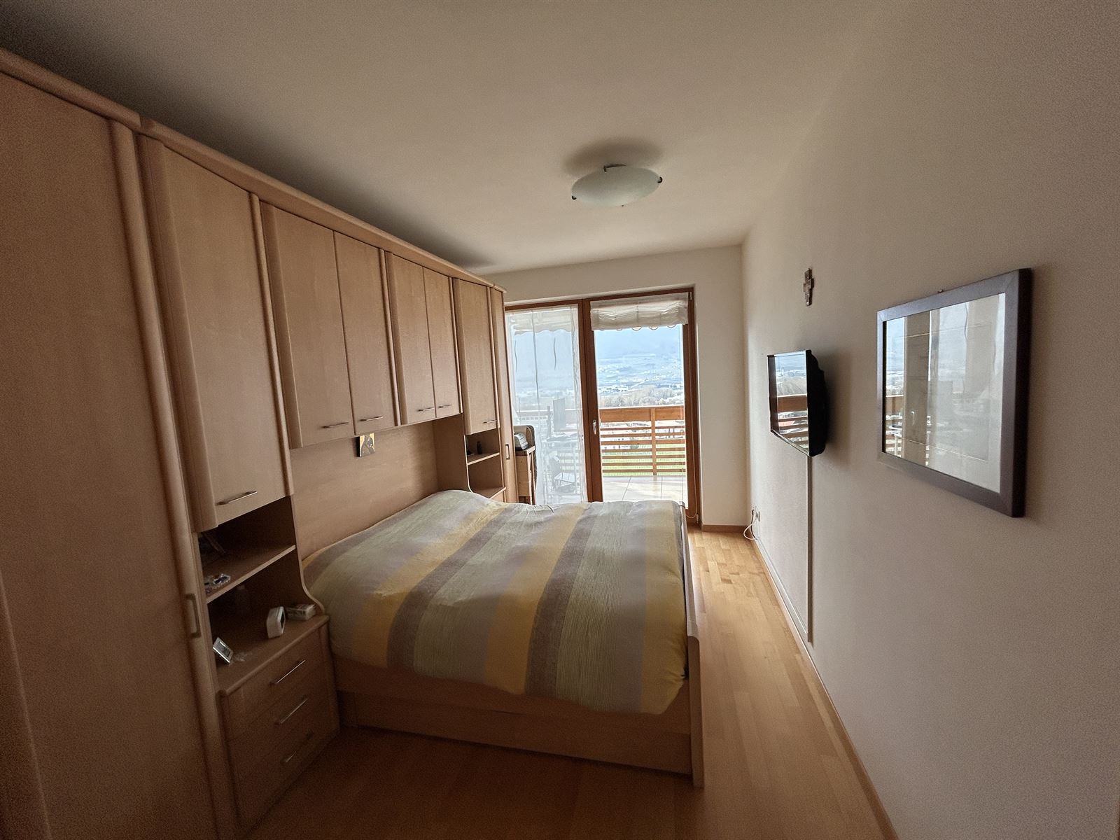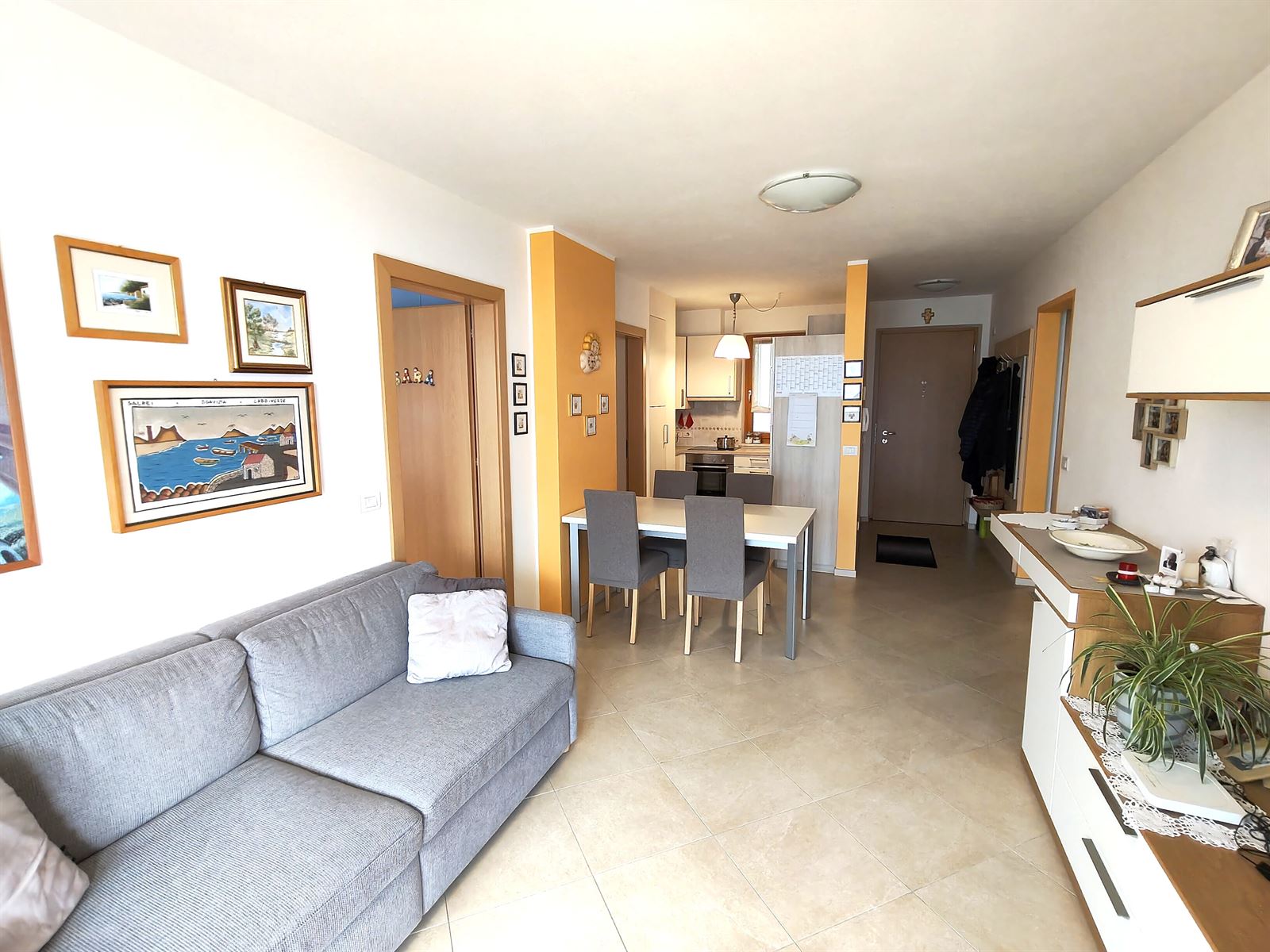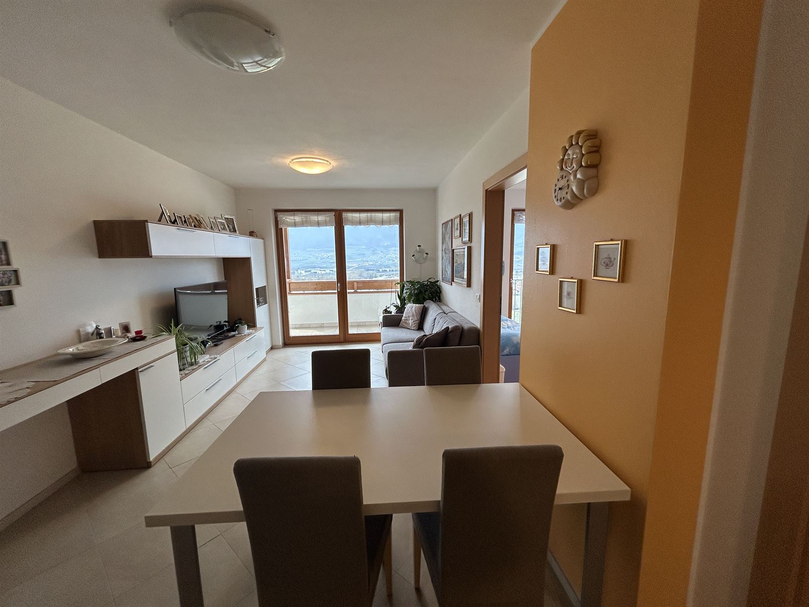 VENDIAMO in EGNA ZONA VIA VILLA, al secondo piano di casa, rifinito appartamento in edificio Casa Clima "B" composto di: ingresso, soggiorno e zona cucina, ampio terrazzo panoramico e soleggiato, tre camere da letto, bagno finestrato e ripostiglio. A corredo a piano seminterrato ampia cantina e un comodo garage. Riscaldamento a pavimento con contabilizzazione consumi, Centrale Termica condominiale. Basse spese condominiali. Nell'appartamento rimarranno alcuni arredi quali cucina e bagno. LA SUPERFICIE COMMERCIALE DELL'UNITA' ABITATIVA è PARI A CIRCA MQ 110. Possibilità di acquisto secondo garage.